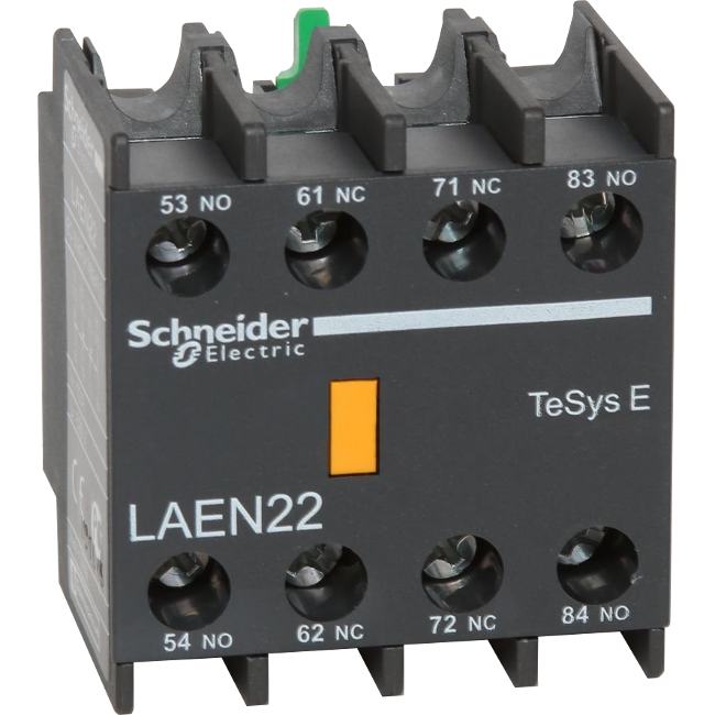 Дополнительный блок контактов LAEN22 позволяет увеличить число дополнительных контактов и предназначен для использования с контакторами серии LC1E или промежуточных реле серии CAE. Устанавливается на фронтальную поверхность контактора или реле.