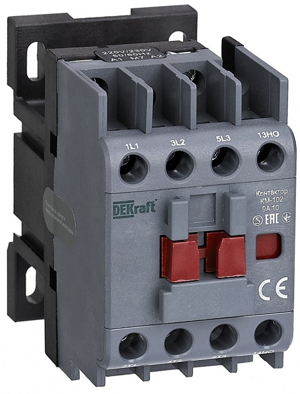 Контактор серии КМ-102 фирмы DEKraft устанавливается на стандартную DIN-рейку или прикручивается напрямую с монтажной пластине через монтажные отверстия на корпусе контактора. Контакторы КМ-102 предназначены для пуска и остановки асинхронных двигателей, для коммутации осветительных сетей и конденсаторных батарей в сетях напряжением до 690В переменного тока. Дополнительные защитные крышки исключают попадание пыли внутрь контактора и обеспечивают защиту от случайного прикосновения.