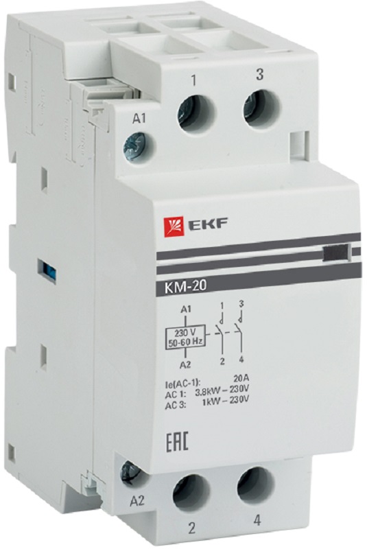Контактор модульный EKF PROxima КМ 2п 2НО 20А 230В АС