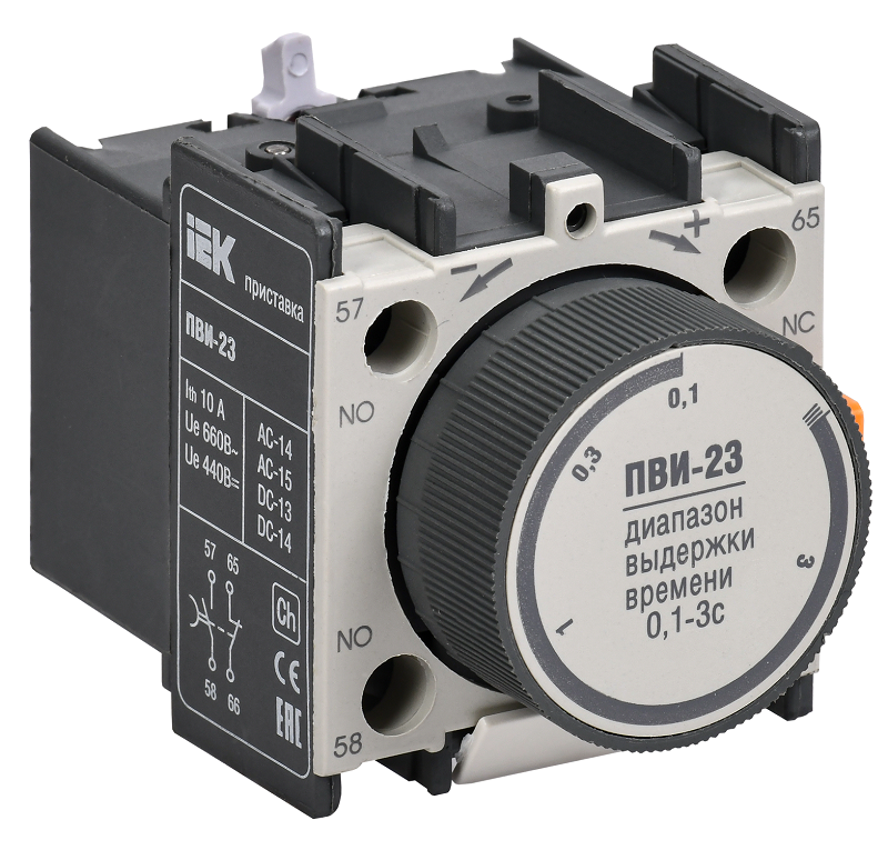 Приставка дополнительная для контакторов IEK ПВИ-23 задержка на выключение 0,1-3сек 1НО+1НЗ