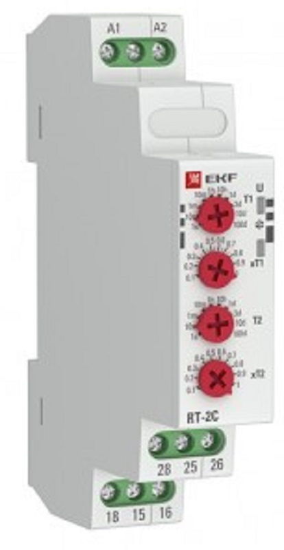 Реле времени на DIN-рейку EKF PROxima RT-2C 2 регулирования порога времени 0,1сек.–24сут. 8А 24-230В картинка