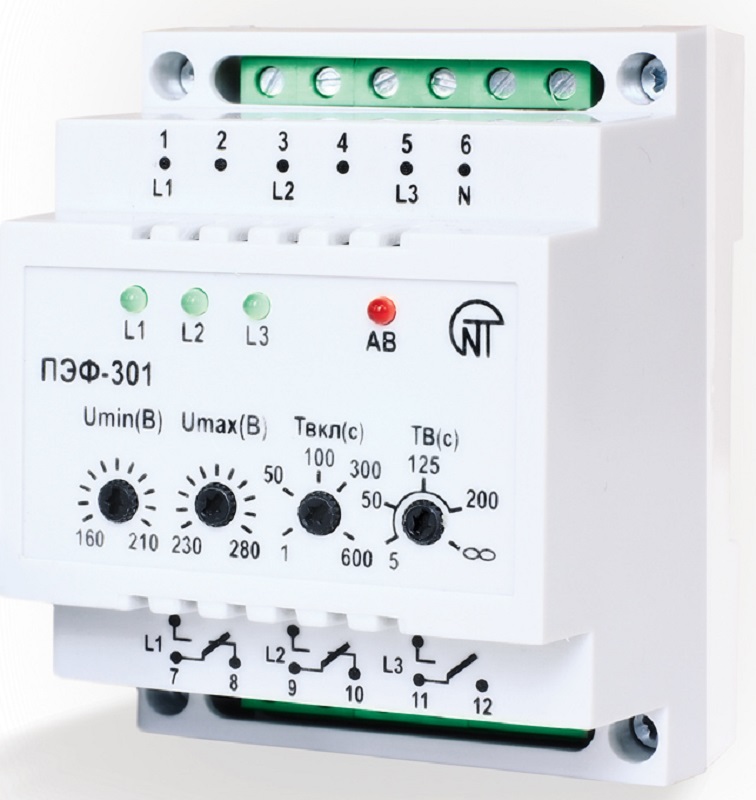 В зависимости от наличия и качества напряжения на фазах ПЭФ-301 автоматически производит выбор наиболее благоприятной фазы и запитывает от нее однофазную нагрузку любой мощности: