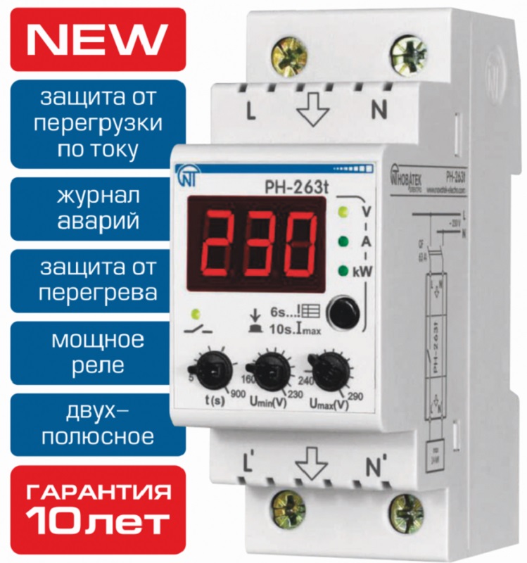 Реле напряжения однофазное на DIN-рейку НовАтек-Электро PH-263T картинка