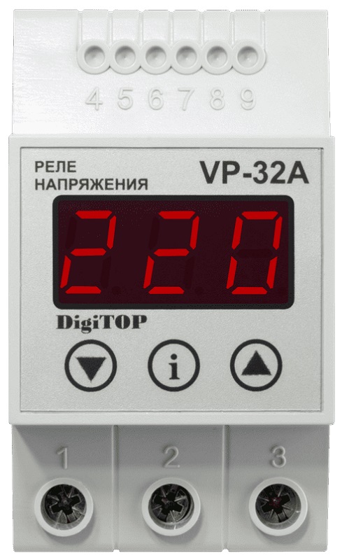 Реле напряжения однофазное цифровое на DIN-рейку DigiTOP VP-32A 32А 50-400В