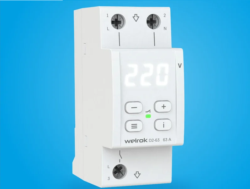 Реле напряжения однофазное цифровое на DIN-рейку WELROK D2-63 63А 50-400В картинка фото 2