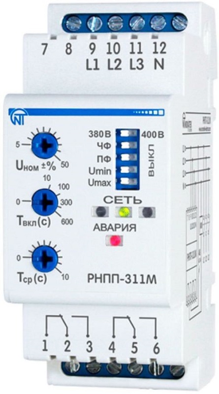 Реле напряжения трехфазное электронное на DIN-рейку НовАтек-Электро РНПП-311М 5А 24-380В картинка