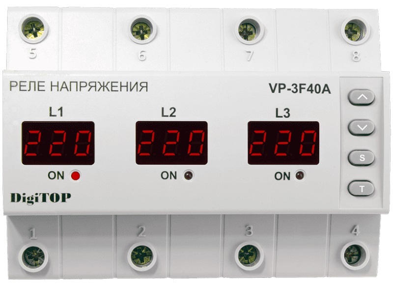 Реле напряжения трехфазное цифровое на DIN-рейку DigiTOP VP-3F40A 3х40А 50-400В