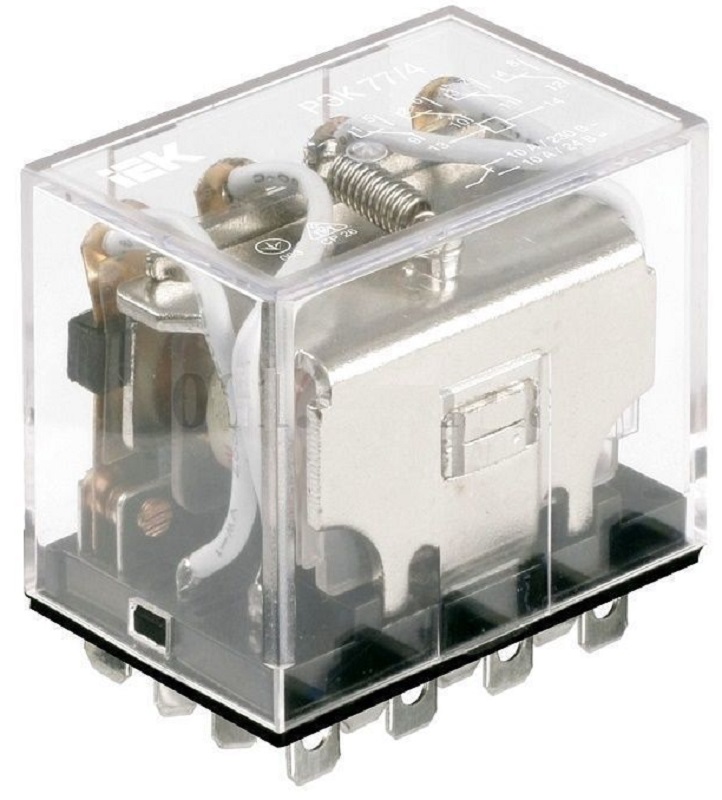 Реле промежуточные модульной серии РЭК77 и РЭК78 предназначены для передачи команд управления исполнительными элементами путем коммутации их электрических цепей своими переключающими контактами. Реле соединяются с розеточными модульными разъемами РРМ77 и РРМ78, устанавливаемыми на 35-мм монтажной DIN-рейке. На разъемах расположены зажимы выводов переключающих контактов и катушки. В реле применяются серебросодержащие контакты.