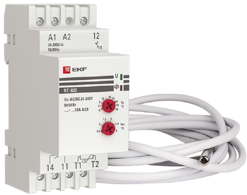 Реле температуры электронное на DIN-рейку EKF RT-820 от -5 до +40 град. с выносным датчиком