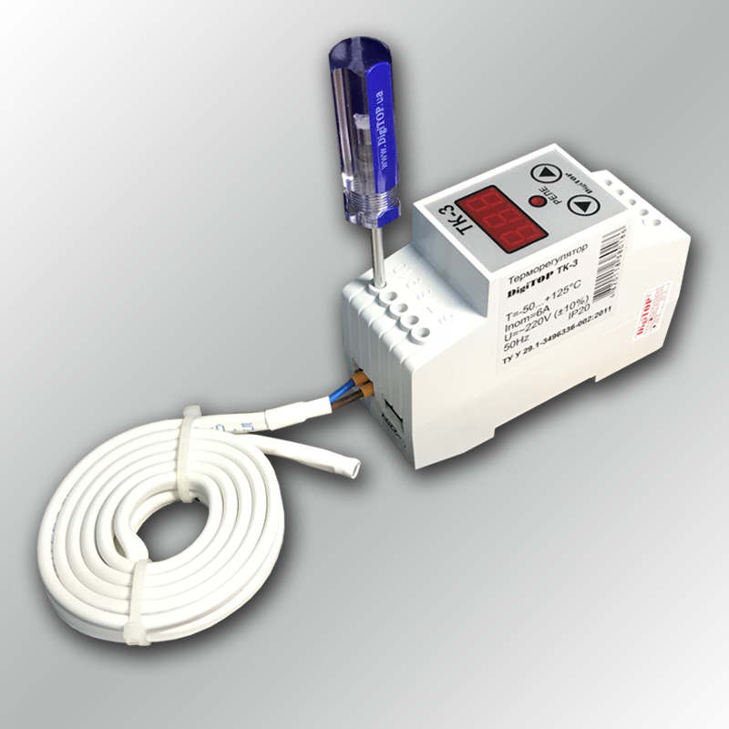 Терморегулятор ТК-3 — одноканальный прибор, обеспечивающий автоматическое управление климатическими установками. Постоянно сканирующий температуру воздуха датчик передает информацию управляющему блоку. Сверяя полученные данные с установленными пользователем настройками, ТК-3 включает/выключает системы, отвечающие за охлаждение или обогрев. Тем самым устройство выполняет сразу две функции.