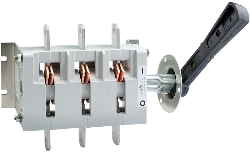 Выключатель-разъединитель 3 полюсный на номинальный ток 400 А, в котором установлена несъемная рукоятка.