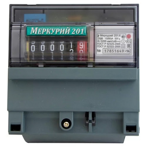 Счетчик электроэнергии 1Ф однотарифный Меркурий 201.6 80/10 Т1 D 230В ОУ картинка фото 2