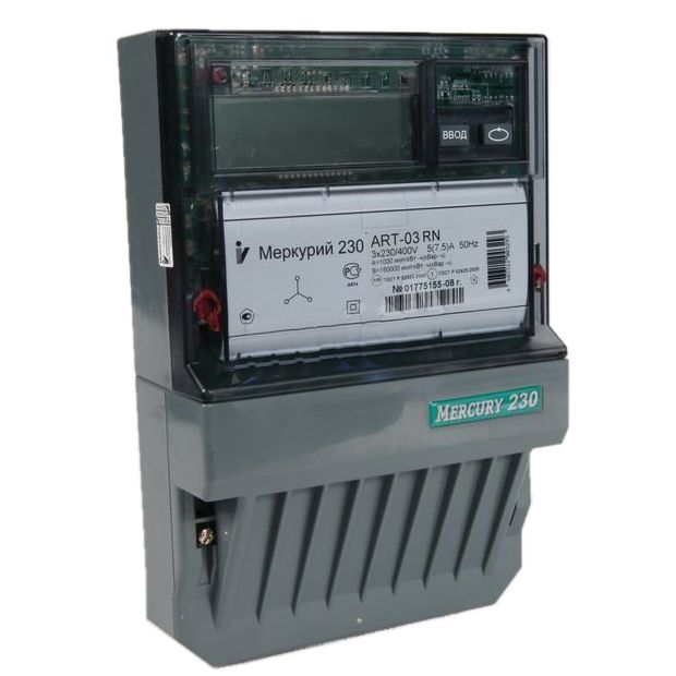 Счетчик электроэнергии 3Ф многотарифный Меркурий 230 ART-03 RN 5-7,5A Т1 D 230/400В ЖК