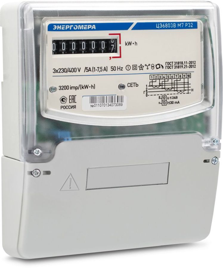 Счетчик электроэнергии 3Ф однотарифный Энергомера ЦЭ-6803В М7Р32 60/5 Т1 D 230/400В