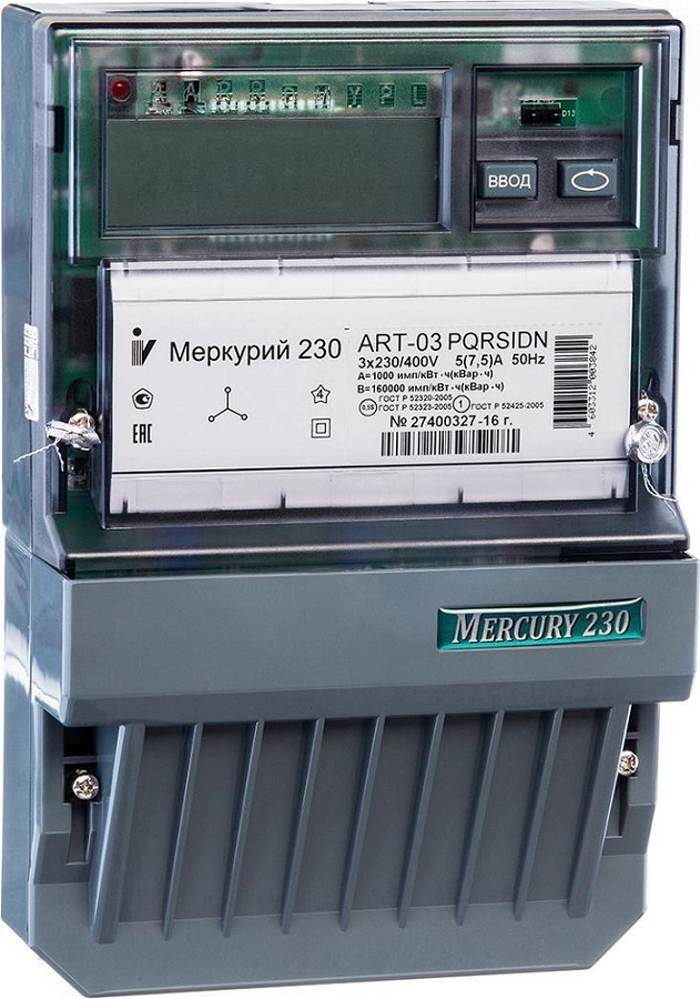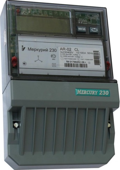 Счетчик электроэнергии 3Ф однотарифный Меркурий 230 AR-02 R 100/10 Т1 D 230/400В ЖК картинка фото 2