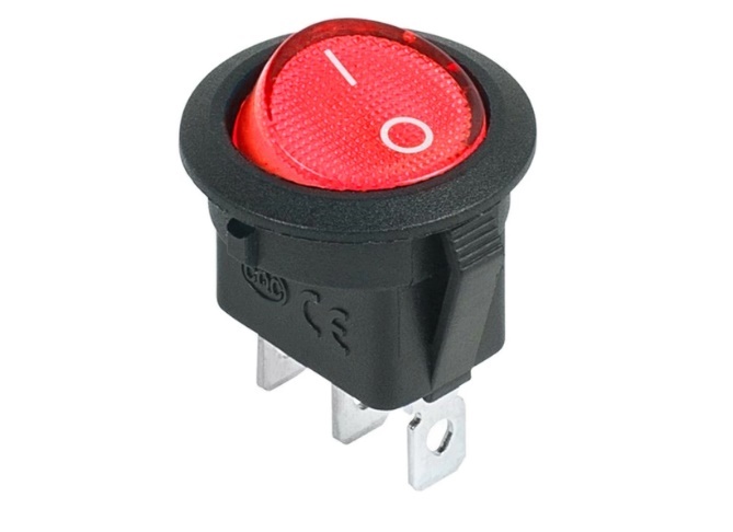 Выключатель клавишный круглый 12V 20А (3с) ON-OFF красный с подсветкой предназначен для коммутации электрических цепей напряжением 12В. Клавишные (Рокерные) выключатели применяются в качестве комплектующих изделий различного электрооборудования (аудио-оборудовании, блоках питания, электроустановках на различных производствах, автомобилях, и многих других местах). Такой клавишный переключатель имеет два положения. Принцип действия основан на перемещении клавиши в одну из позиций. Для переключения в нужное положение требуется приложить некоторые усилия на клавишу. Монтаж осуществляется без применения винтов на плоских панелях толщиной от 0.8мм до 3мм. Подключение контактов осуществляется плоской клеммой, либо с помощью пайки.