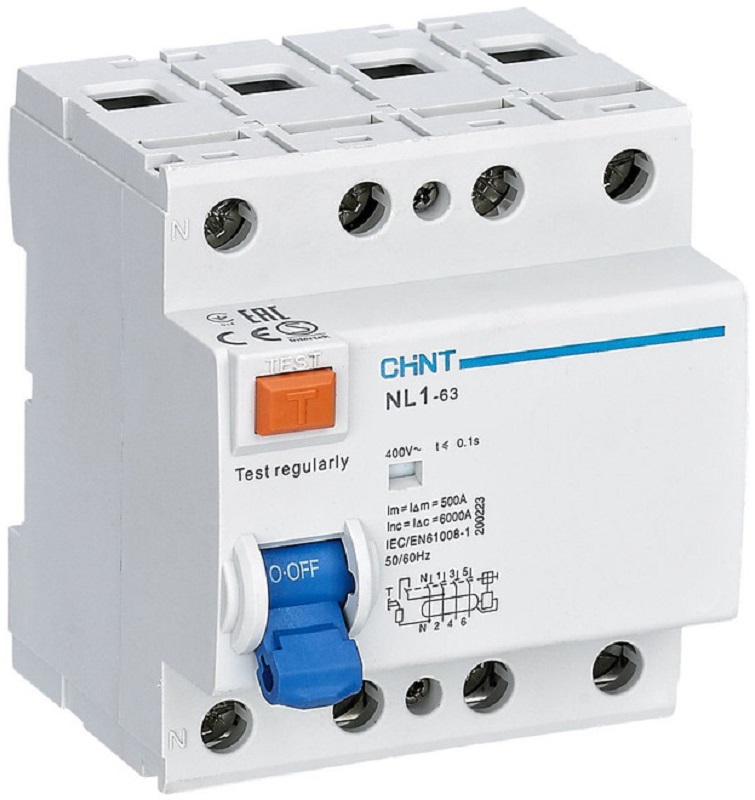 Выключатель дифференциального тока УЗО CHINT NL1-63 4п 40А 30мА 6,0кА тип AC