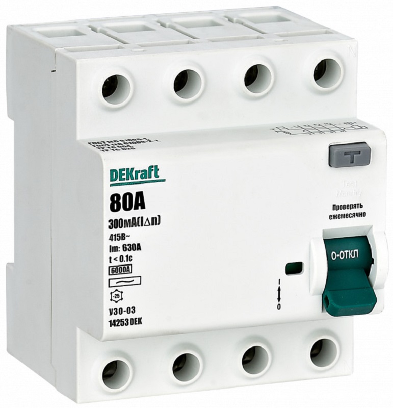 Выключатель дифференциального тока УЗО DeKraft УЗО-03 4п 80А 300мА 6,0кА тип AC