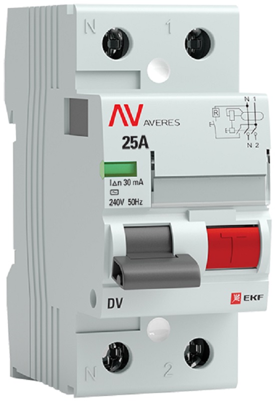 Выключатель дифференциального тока УЗО EKF Averes DV 2п 25А 30мА 10кА тип A картинка