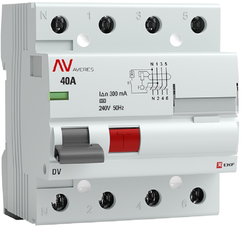 Выключатель дифференциального тока УЗО EKF Averes DV 4п 40А 300мА 10кА тип A