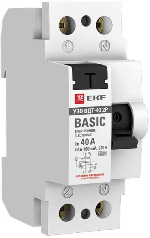 Выключатель дифференциального тока УЗО EKF Basic ВДТ-40 2п 40А 100мА 4,5,кА тип AC