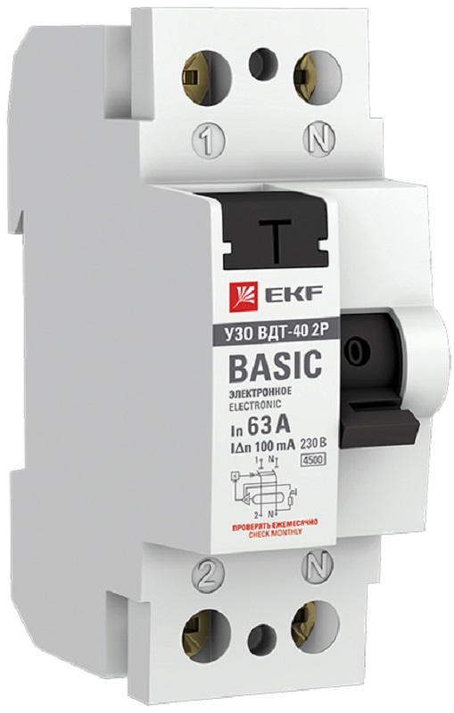 Выключатель дифференциального тока УЗО EKF Basic ВДТ-40 2п 63А 100мА 4,5,кА тип AC
