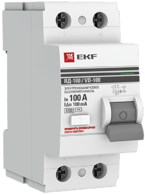 Выключатель дифференциального тока УЗО EKF PROxima ВД-100 2п 100А 100мА 4,5,кА тип AC