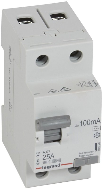 Выключатель дифференциального тока УЗО Legrand RX3 2п 25А 100мА 10,0кА тип AC