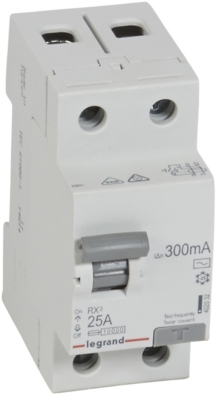 Выключатель дифференциального тока УЗО Legrand RX3 2п 25А 300мА 10,0кА тип AC
