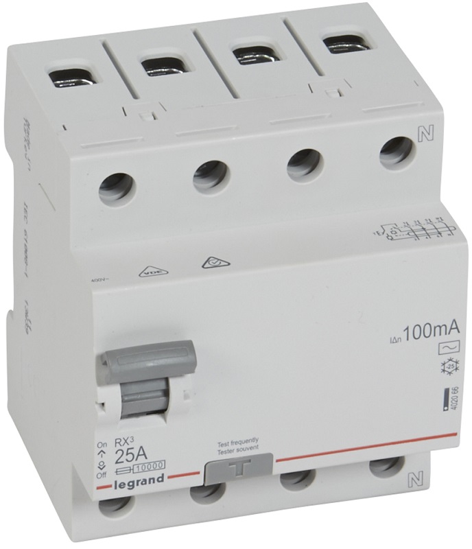 Выключатель дифференциального тока УЗО Legrand RX3 4п 25А 100мА 10,0кА тип AC