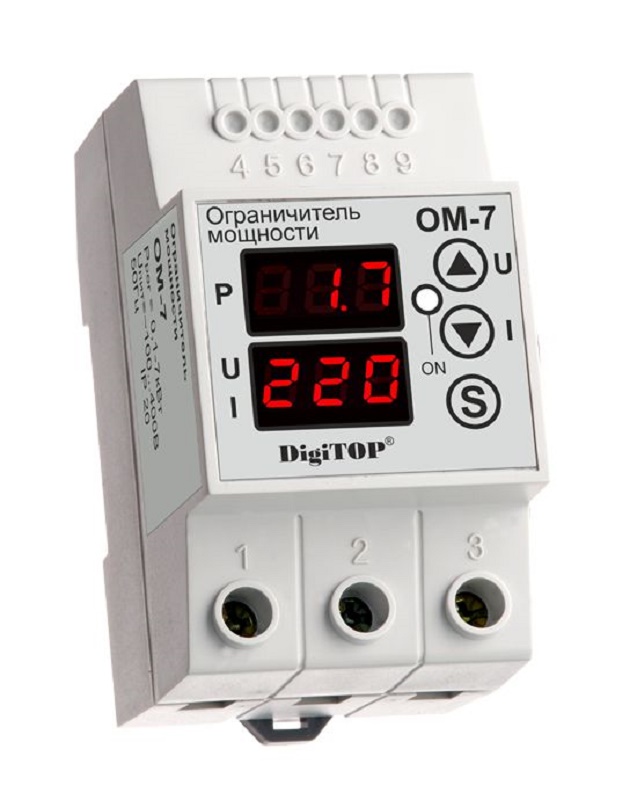 Ограничитель мощности однофазный цифровой на DIN-рейку DigiTOP OM-7 0,1-7кВт 50-400В картинка