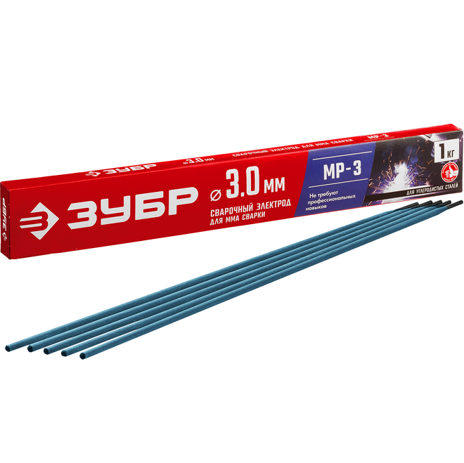 Электрод Зубр МР-3 рутиловый, d 3.0 х350 мм, 1 кг в коробке.