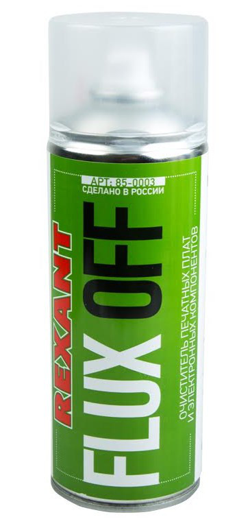 FLUX OFF Rexant – сбалансированная смесь растворителей, быстро и надежно удаляющая флюс и прочие загрязнения после пайки. ФЛЮКС-ОФФ удаляет масла, смазки, битумы, воски и другие нефтяные загрязнения. После испарения, средство не оставляет следов на обрабатываемых поверхностях.