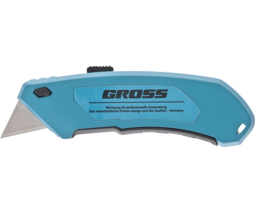 Нож Gross 78899 из стали SK-5, длиной 130 мм, с алюминиевым корпусом, выдвижным трапециевидным лезвием шириной 18 мм, клипсой для ремня и 4 лезвиями, — профессиональный инструмент для разрезания картона, линолеума, обоев, кожи и других мягких материалов. Благодаря алюминиевому корпусу инструмент отличается повышенной прочностью и коррозионной стойкостью, выдерживает длительное и частое использование. Нож будет полезен при проведении ремонтных и отделочных работ, подойдет и для бытового использования.