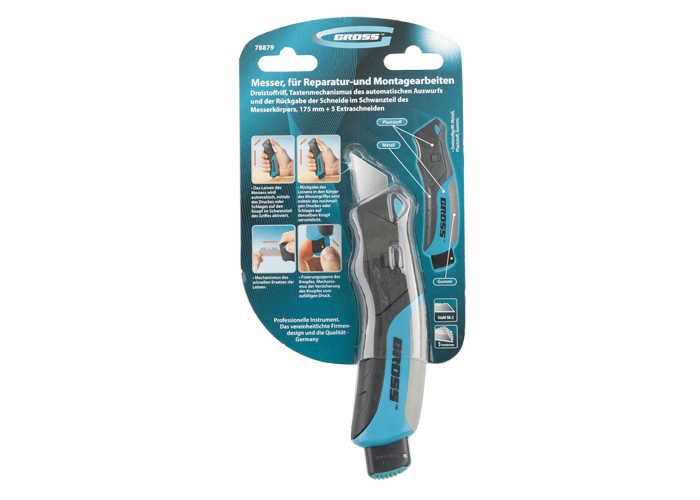 Нож технический Gross, трехкомпонентная рукоятка, авто выброс/возврат, 175 мм+5 запасных лезвий