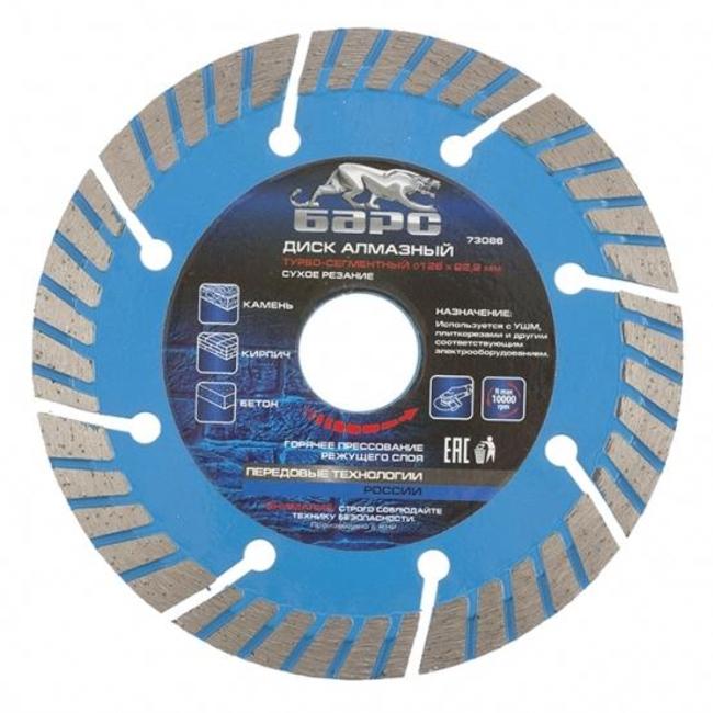 Диск алмазный 125мм Барс турбо-сегментный 125х22,2 мм, сухое резание