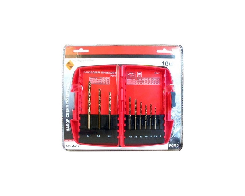 Набор сверл ЭНКОР 25210 по металлу 10шт. 1.5-6.5мм Р6М5