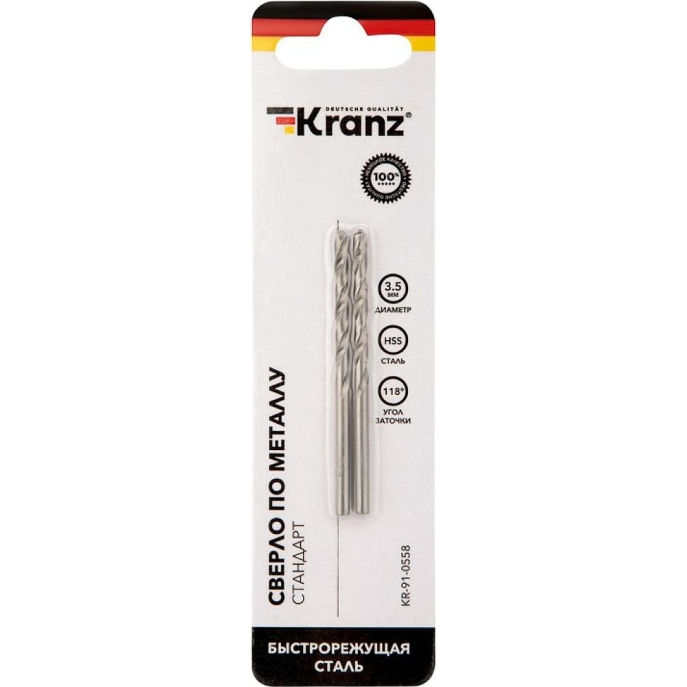 Сверло по металлу 3,5 мм Kranz HSS DIN 338 (2шт) KR-91-0558