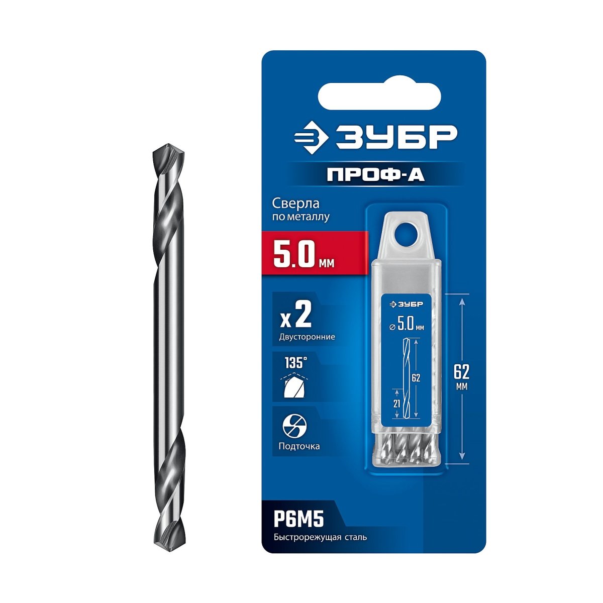 Сверло по металлу двухстороннее ЗУБР Проф-А, Р6М5, 5.0х62 мм (1 шт.)