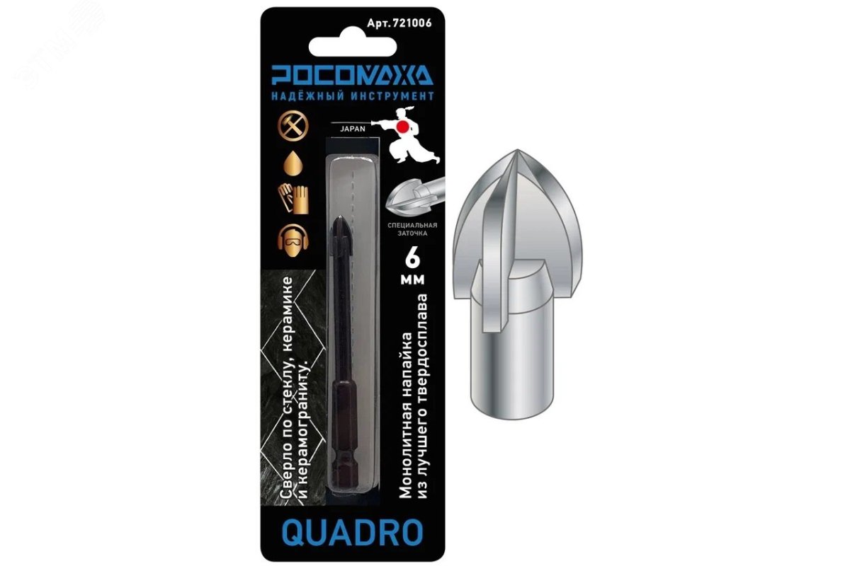 Сверло по стеклу и керамике 6 мм Росомаха 4 грани шестигранный хвостовик  картинка