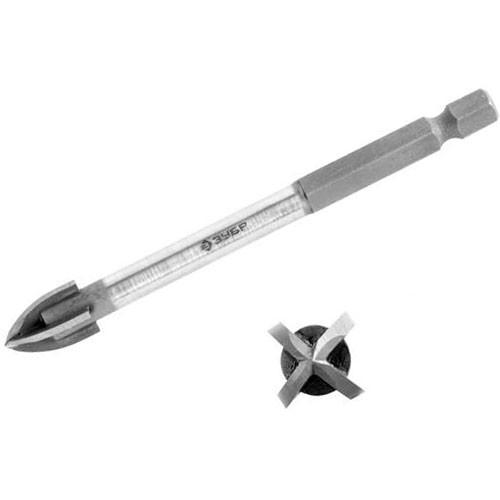 Сверло по стеклу и керамике 6 мм Зубр 4 грани шестигранный хвостовик