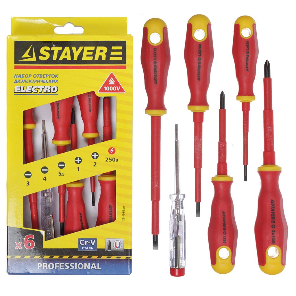 Набор диэлектрических отверток Stayer до 1000В, тестер, Cr-V, (6шт.)