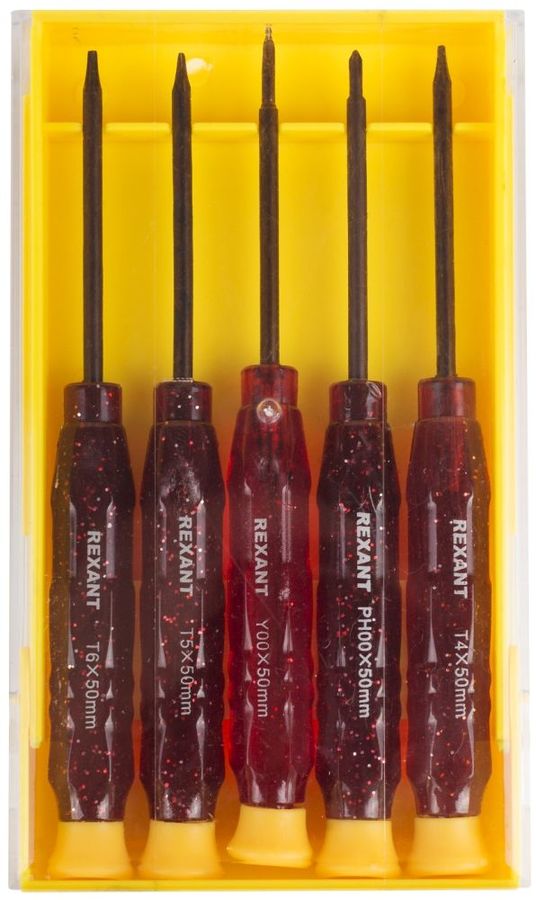 Набор отверток для точных работ REXANT 5 в 1 оптимально подходит для выполнения прецизионных работ в электронике и электромеханике. Используется для ремонта телефонов, планшетов, ноутбуков, электронных книг, часов.