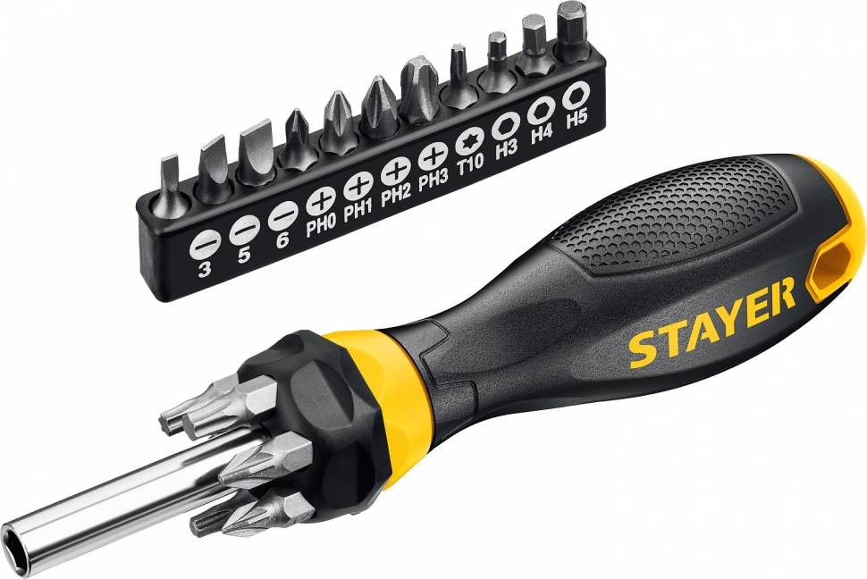 Отвертка-битодержатель Stayer Hercules-B18 набор: отвертка-битодержатель с насадками 18 шт