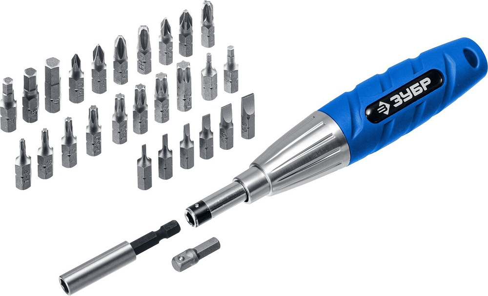 Отвертка динамометрическая Зубр 64020 со шкалой, регулируемая, 1-4 Нм, 26 бит в наборе с адаптер