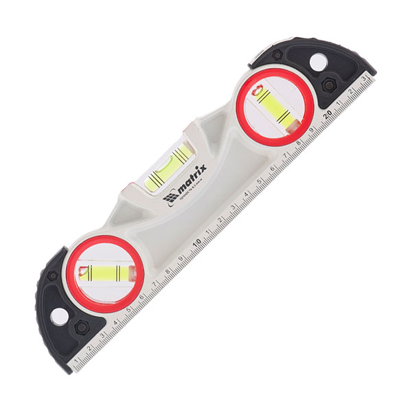 Для изготовления уровней бренда Matrix используется алюминиевый сплав марки 6063. Этот измерительный инструмент позволяет проверять вертикальные и горизонтальные поверхности, а также те поверхности, которые расположены под углом 45 градусов.
