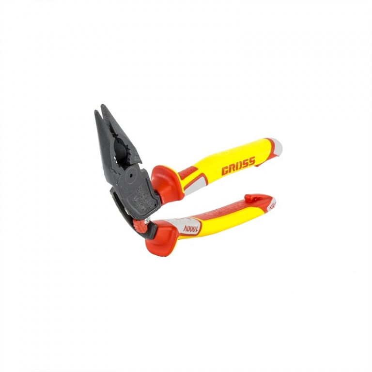 Длинногубцы 200 мм Gross с изогнутой головой, комбинированные, диэлектрические рукоятки до 1000 В.