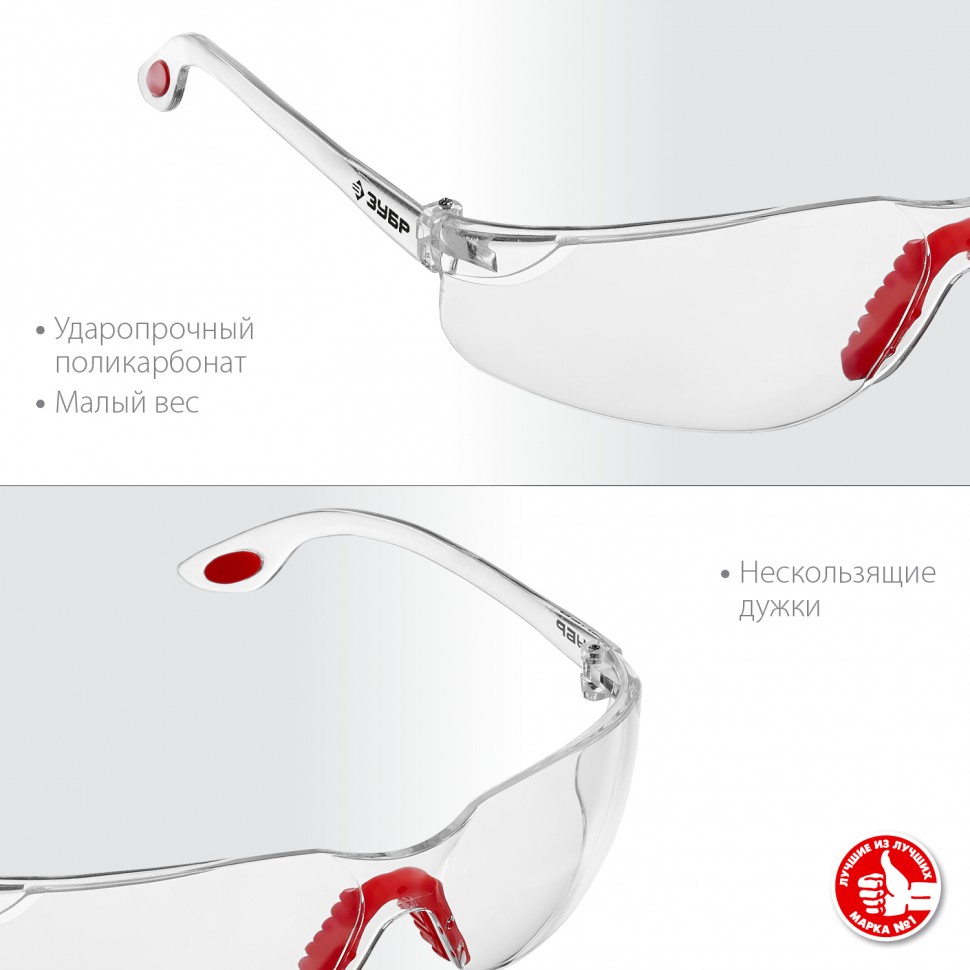 Очки защитные ЗУБР СПЕКТР 3 широкая монолинза, открытого типа 110315  картинка