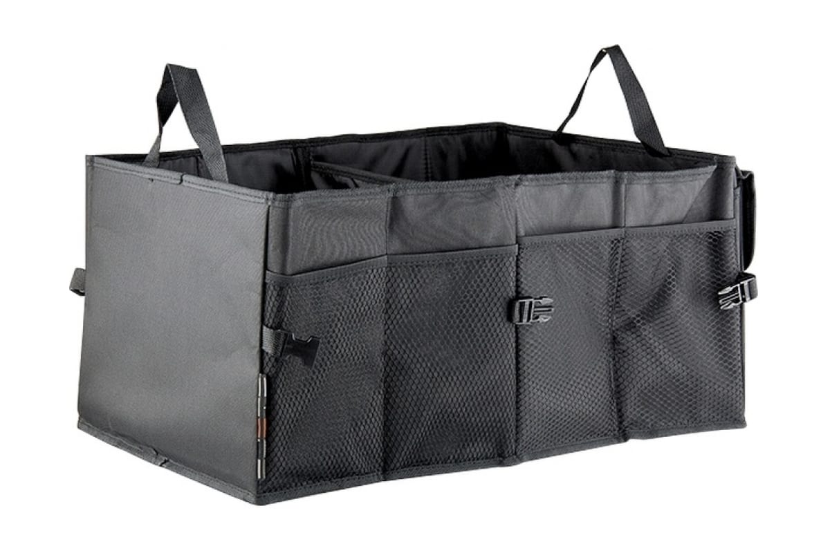 Складной автомобильный органайзер Stels 54395 предназначен для компактного размещения вещей в багажнике. Два больших отделения и сетчатые карманы позволяют хранить габаритные инструменты и мелкие предметы. Благодаря органайзеру инструменты не будут кататься по багажнику во время движения.