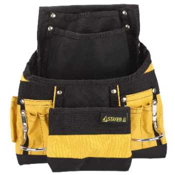 Сумка поясная для инструментов нейлоновая 10 карманов STAYER, 38605 используется для размещения и переноски ручного инструмента и крепежа при выполнении монтажных работ.